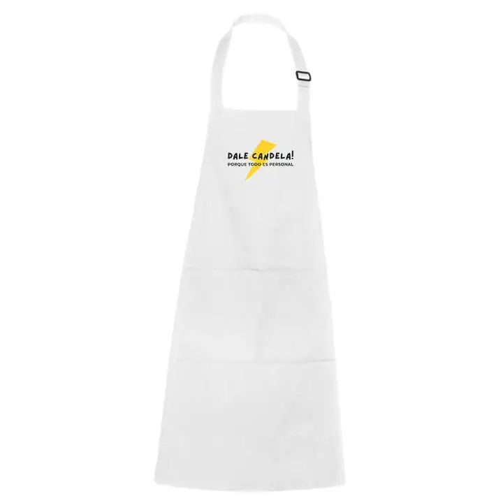 Delantal personalizado tipo Benoit, perfecto para personalizar y regalar a l@s cocinillas de la casa. Delantal largo de sarga con tirante con cierre ajustador de plástico y cintas laterales para lazada. Con bolsillo frontal con costura en el centro.